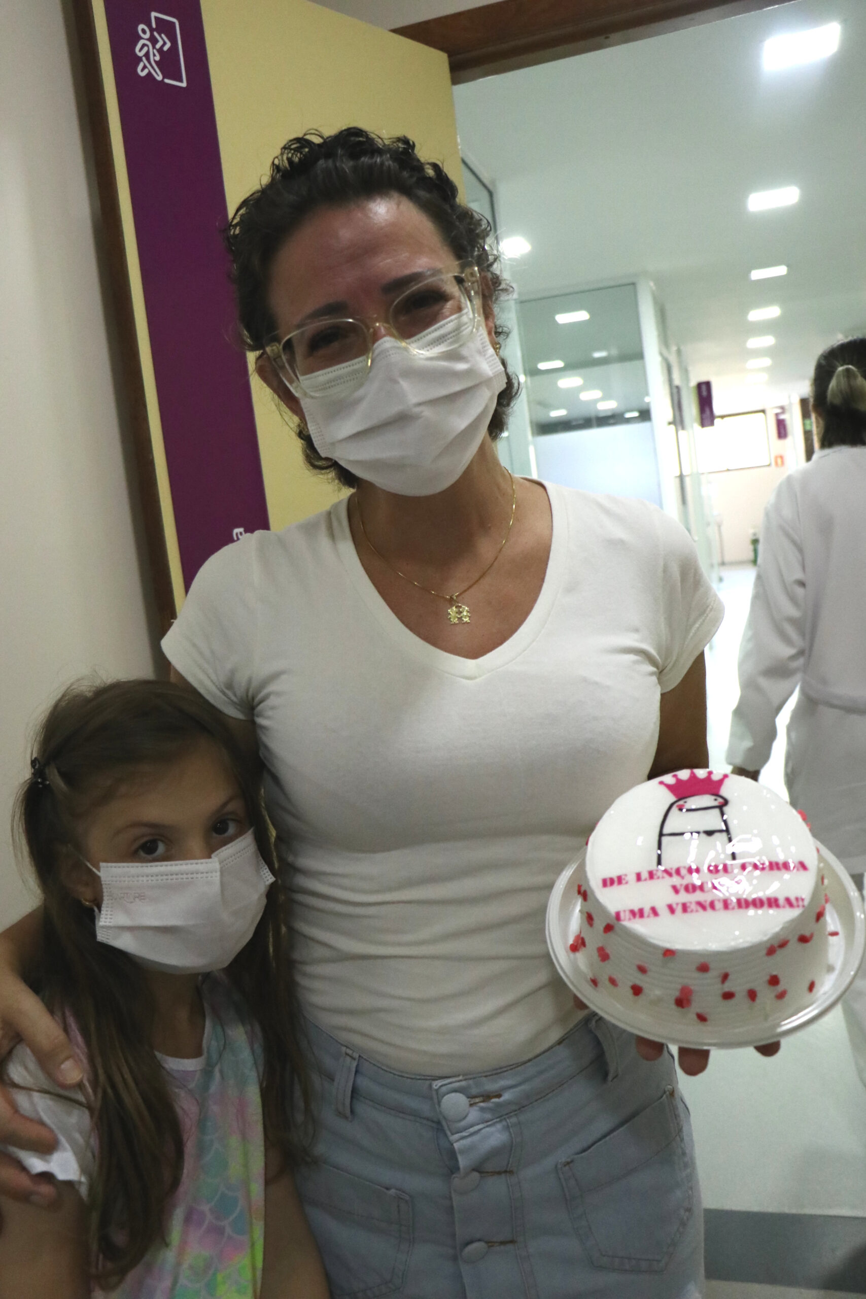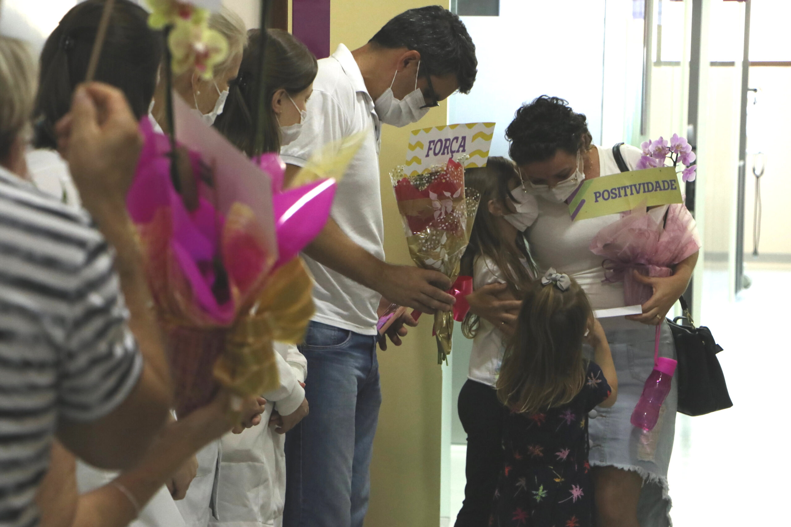 Das mãos das duas filhinhas, do esposo, dos sogros, de demais familiares e colegas de trabalho, Raquel recebeu flores, mensagens de carinho, muitos abraços e um bolo para comemorar com a família. Tudo isso para simbolizar a vitória e o exemplo de luta diante de uma adversidade de saúde. “O apoio dos familiares e colegas de trabalho foi essencial no tratamento. Sou muito grata por receber tanto amor e carinho nessa jornada”, destaca.