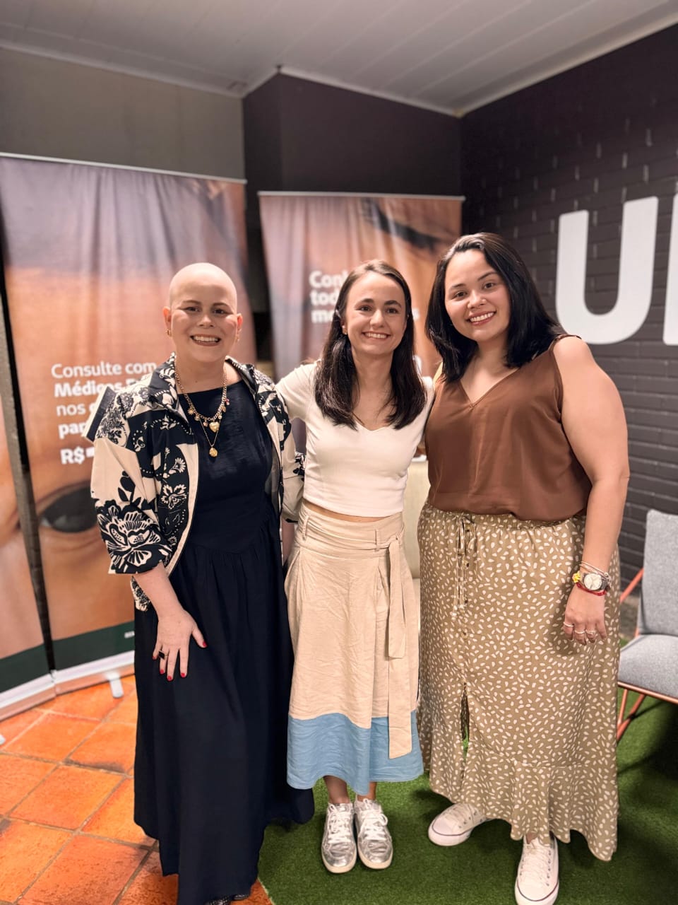 Também participaram a médica oncologista clínica e coordenadora do Centro de Oncologia do Hospital Unimed Noroeste/RS, Letícia Y Castro, o arquiteto Lorenzo Cunegato, que venceu a luta contra a leucemia e mediou o debate, além das pacientes Jéssica Hickenbick e Karine Biscaino, que relataram suas histórias de superação. “Percebemos em nosso serviço que o cuidado no dia a dia é fundamental. A equipe conhece o paciente e suas questões, então isso faz toda a diferença”, observou a médica Letícia Y Castro.