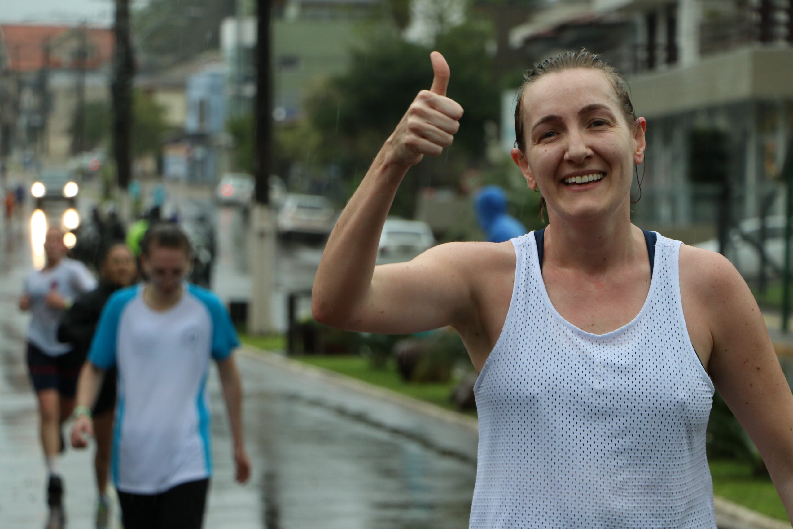 Ao final da prova uma surpresa deu um toque ainda mais especial ao evento. Com direito a cartaz e brinde com espumante, a aniversariante Deborah Dietrich, de Panambi, foi recebida por familiares e amigos (inclusive, parceiros de corrida) ao concluir o percurso. “Esse domingo teve muita superação. A chuva forte que caiu tornou tudo mais desafiador. E não tem forma melhor que comemorar meus 48 anos ao final da corrida, chegar e ser recebida com carinho pelo meu esposo e minhas companheiras de prova: foi incrível. Vai marcar para sempre, ainda mais para a gente que gosta dessa vida em movimento”, reforça.