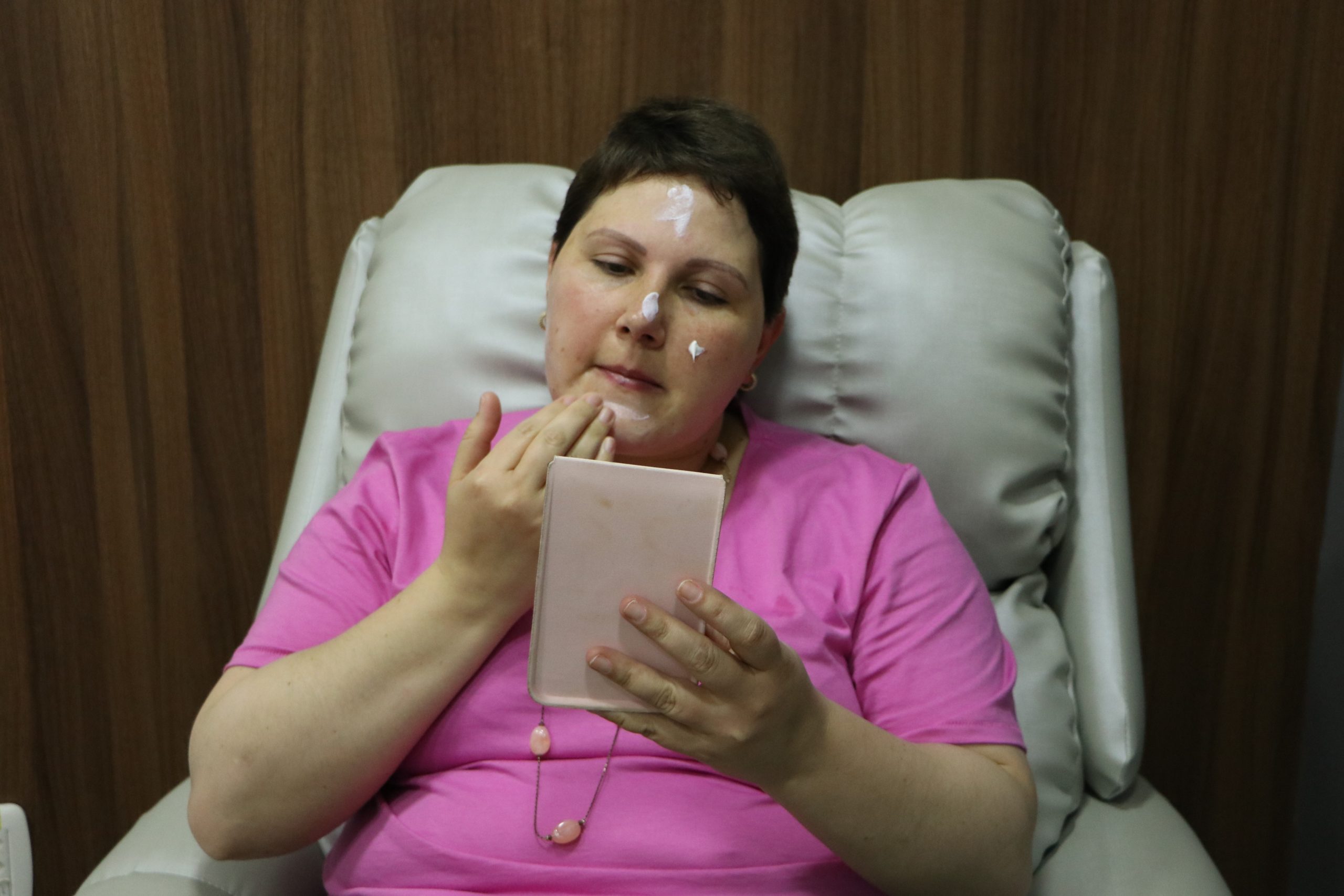Entre olhares, sorrisos e palavras de carinho e atenção, o Centro de Oncologia do Hospital Unimed Noroeste/RS teve uma tarde diferente nesta segunda-feira, 17. Para reforçar o significado do Outubro Rosa foi realizado o Dia da Beleza para mulheres em tratamento de câncer de mama, momento de elevar a autoestima e mostrar a força delas. Com o engajamento de profissionais voluntárias, as participantes se produziram com maquiagem e cabelo para um ensaio fotográfico.