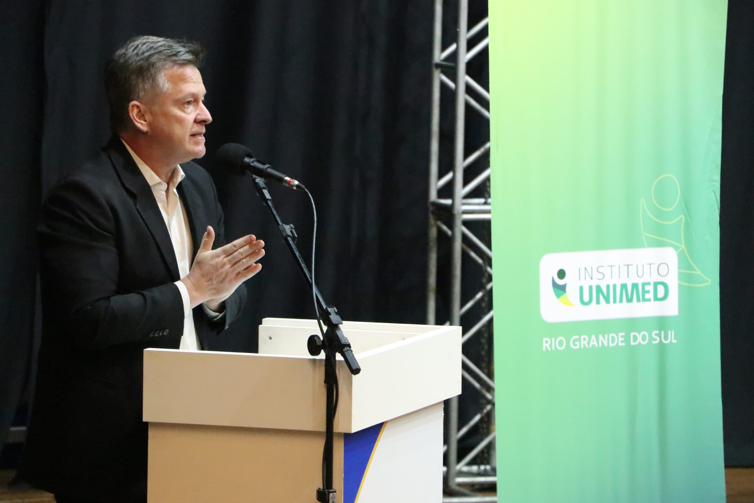 Em sua fala de boas-vindas ao público, o presidente do Conselho de Administração da cooperativa, médico Volnei Santos Malheiros, salientou o propósito da Unimed Noroeste/RS em sua trajetória de 54 anos de serviços prestados à comunidade regional. “A Unimed Noroeste/RS, enquanto cooperativa médica, representa muito mais do que um modelo de negócio. Somos um sistema que nasceu da união de pessoas que compartilhavam um propósito comum, cuidar de vidas, e que segue atuando de forma integrada na comunidade onde está inserida. É com esse espírito que nos reunimos para refletir, juntos, sobre o sentido do trabalho, da cooperação e do pertencimento”, observou.
