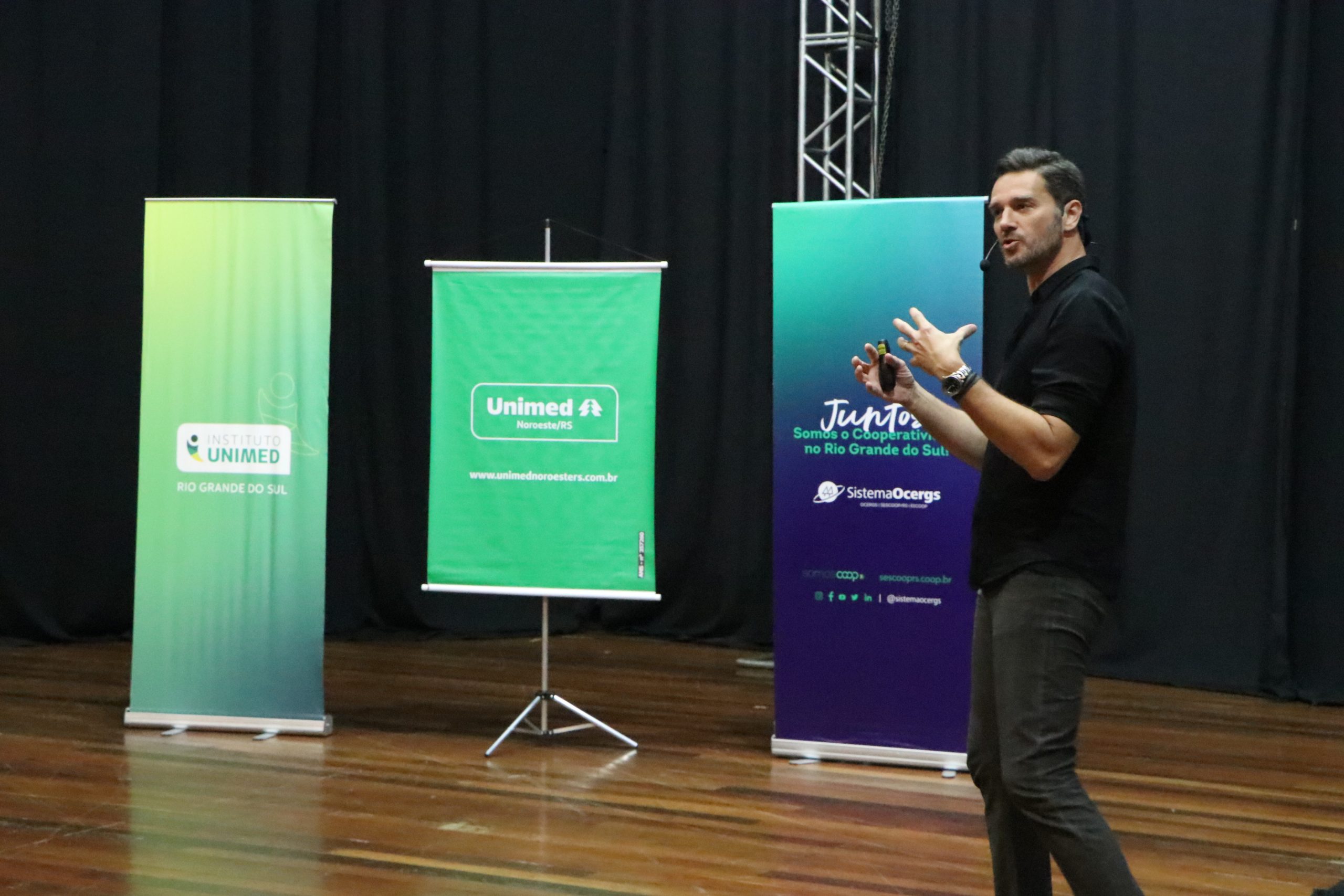 Com o objetivo de promover a troca de ideias e fortalecer os princípios do cooperativismo, foi realizado nesta segunda-feira, 10, o Fórum Regional do Instituto Unimed/RS, uma parceria entre a Unimed Noroeste/RS, o Instituto Unimed/RS, o Sescoop/RS e o curso de Administração da Unijuí. A noite contou com a palestra “Propósito e Pertencimento”, ministrada por Alexandre Pellaes, professor, pesquisador e palestrante reconhecido nacionalmente por sua atuação em temas como significado do trabalho, novos modelos de gestão, liderança e futuro das relações profissionais.