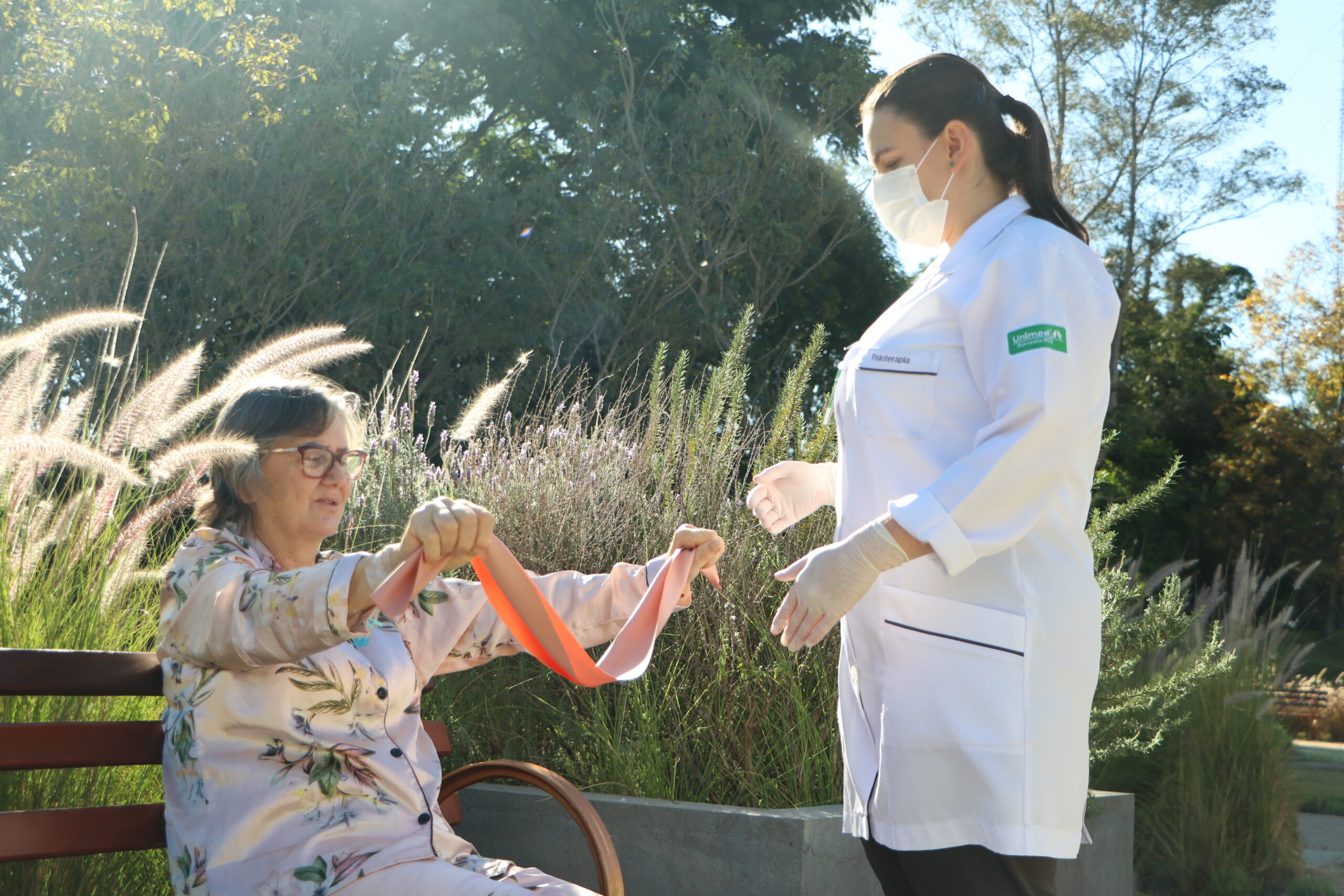 Mobilidade no Hospital Unimed – A mobilidade do paciente é fundamental para o desfecho favorável no seu processo de recuperação, com benefícios físicos e psicológicos, sempre levando em conta a alta segura. Para os indivíduos independentes, a força muscular será preservada, mantendo sua autonomia e prevenindo agravamentos de condições clínicas. Desta forma, o Hospital Unimed possui e está aprimorando constantemente, seja com novas tecnologias ou novas condutas, Plano de Mobilidade, que comporta ações como a do Jardim Terapêutico. “Para aqueles que necessitam de auxílio, o ganho ou a manutenção da mobilidade é primordial para preservar sua funcionalidade, estimular convívio social e para que ele possa auxiliar nos seus cuidados diários com segurança”, reforça a fisioterapeuta Fabiane Mazzurana.