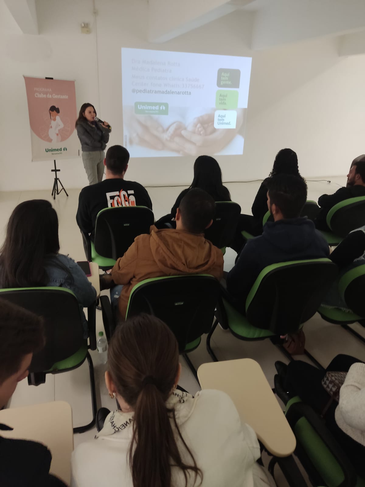 Com o objetivo de orientar e acolher futuras mamães e os papais, o Hospital Unimed Noroeste/RS realizou mais uma edição do Clube da Gestante em Panambi. Durante três encontros presenciais, nos dias 2, 4 e 9 de setembro, os participantes tiveram a oportunidade de esclarecer dúvidas e receber informações sobre temas essenciais, como os preparativos para o parto, a amamentação, os primeiros cuidados com o bebê e os desafios do puerpério.