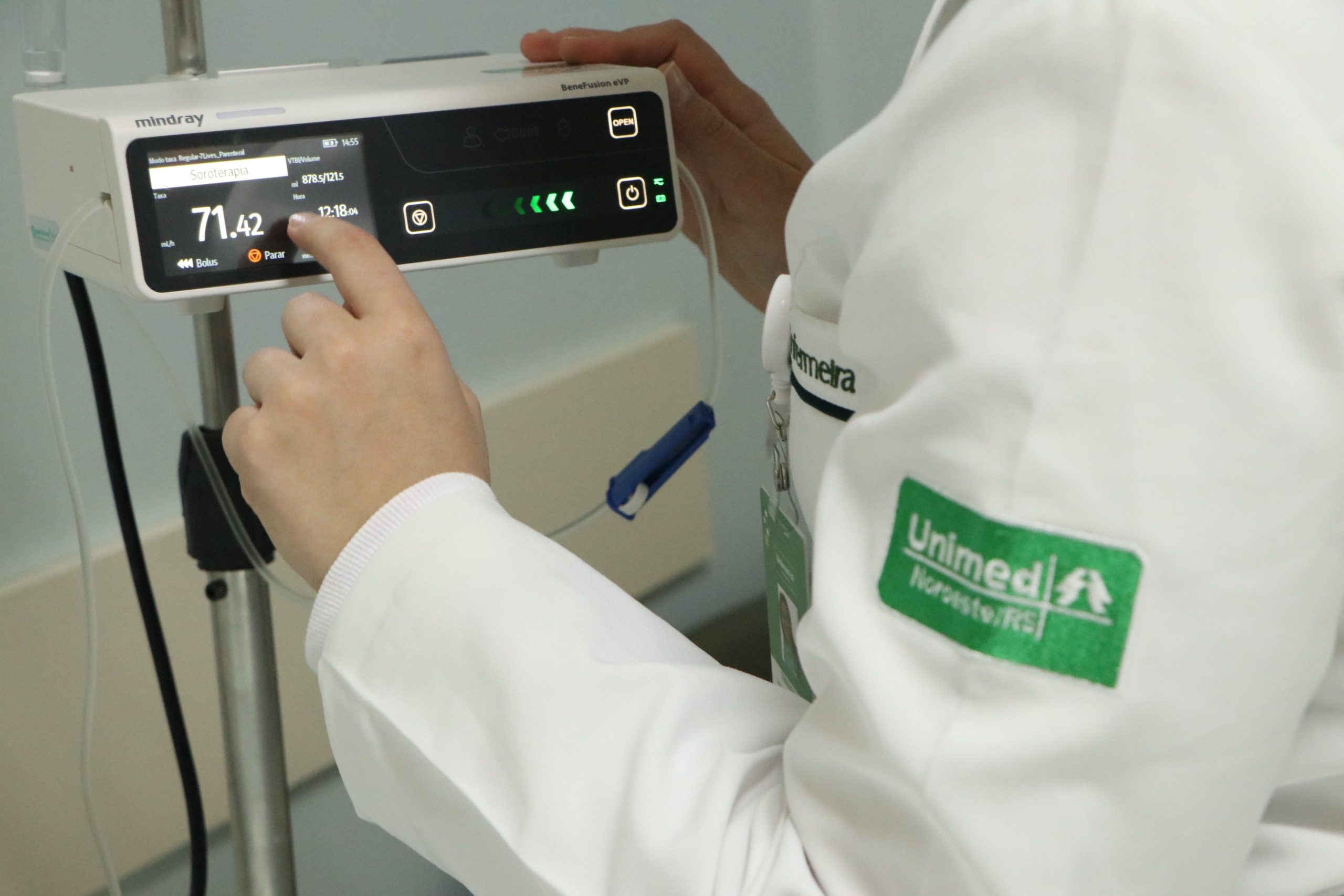 Com foco na segurança do paciente e qualificação de suas estruturas, o Hospital Unimed Noroeste/RS incorporou novas bombas de infusão hospitalares, equipamentos essenciais para a administração precisa e contínua de medicamentos. Os aparelhos, mais modernos e eficientes, já estão em uso em todos os setores da instituição, somando cerca de cem novos equipamentos.