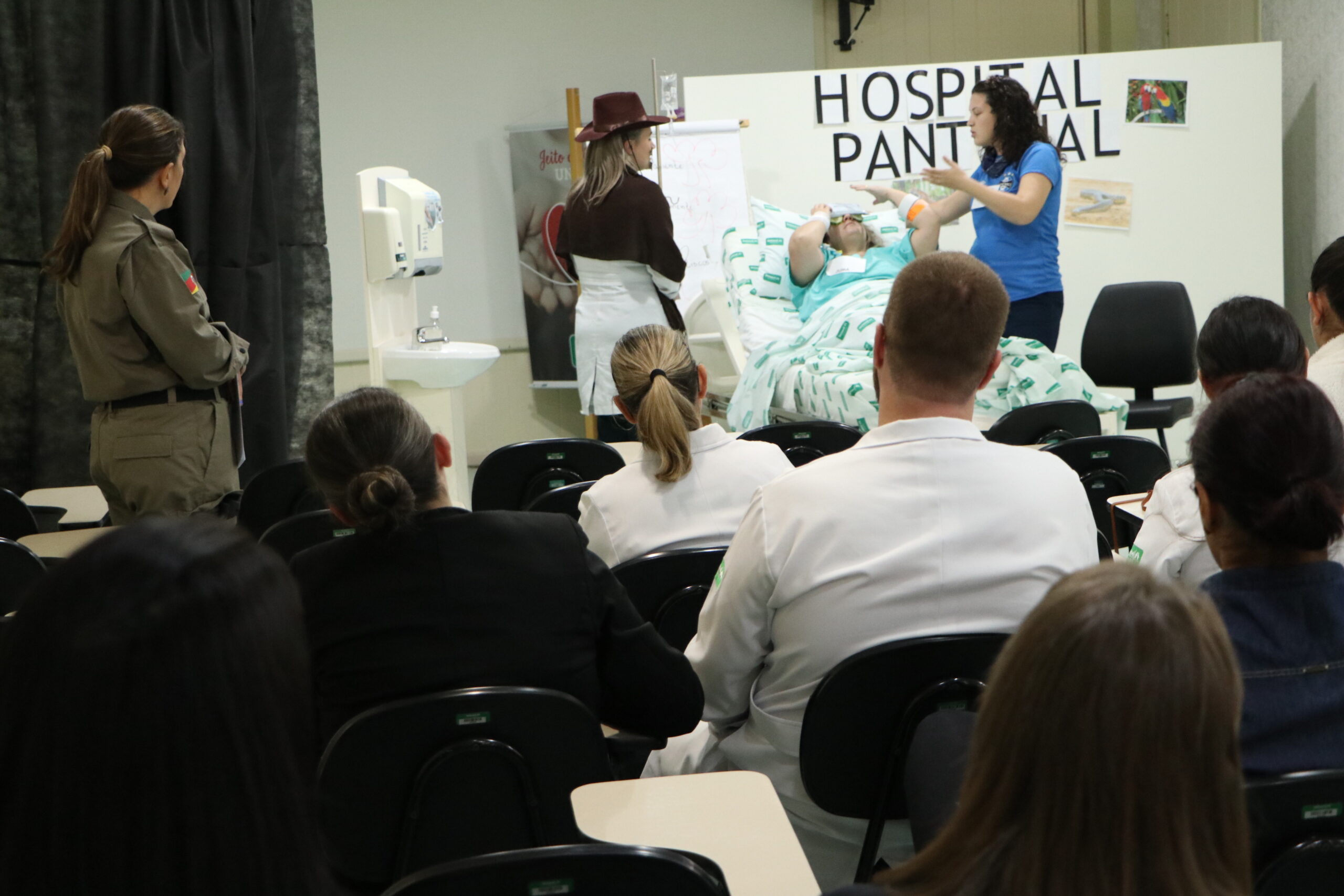 Com o título “Segurança do paciente: qual o nosso papel?”, os profissionais assistiram na tarde desta terça-feira, 16, a uma palestra em forma de peça teatral, coordenada pela personagem “Dra. Segurança”. Na dinâmica apresentada, diversas cenas, em formas de esquetes, serviram como base para discussões de protocolos de segurança no Hospital, com participação ativa da plateia. Tudo isso com muito humor e irreverência.