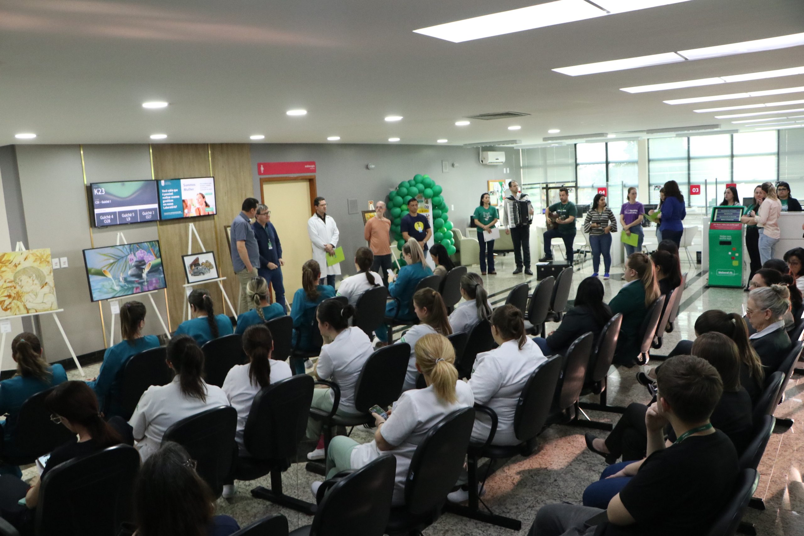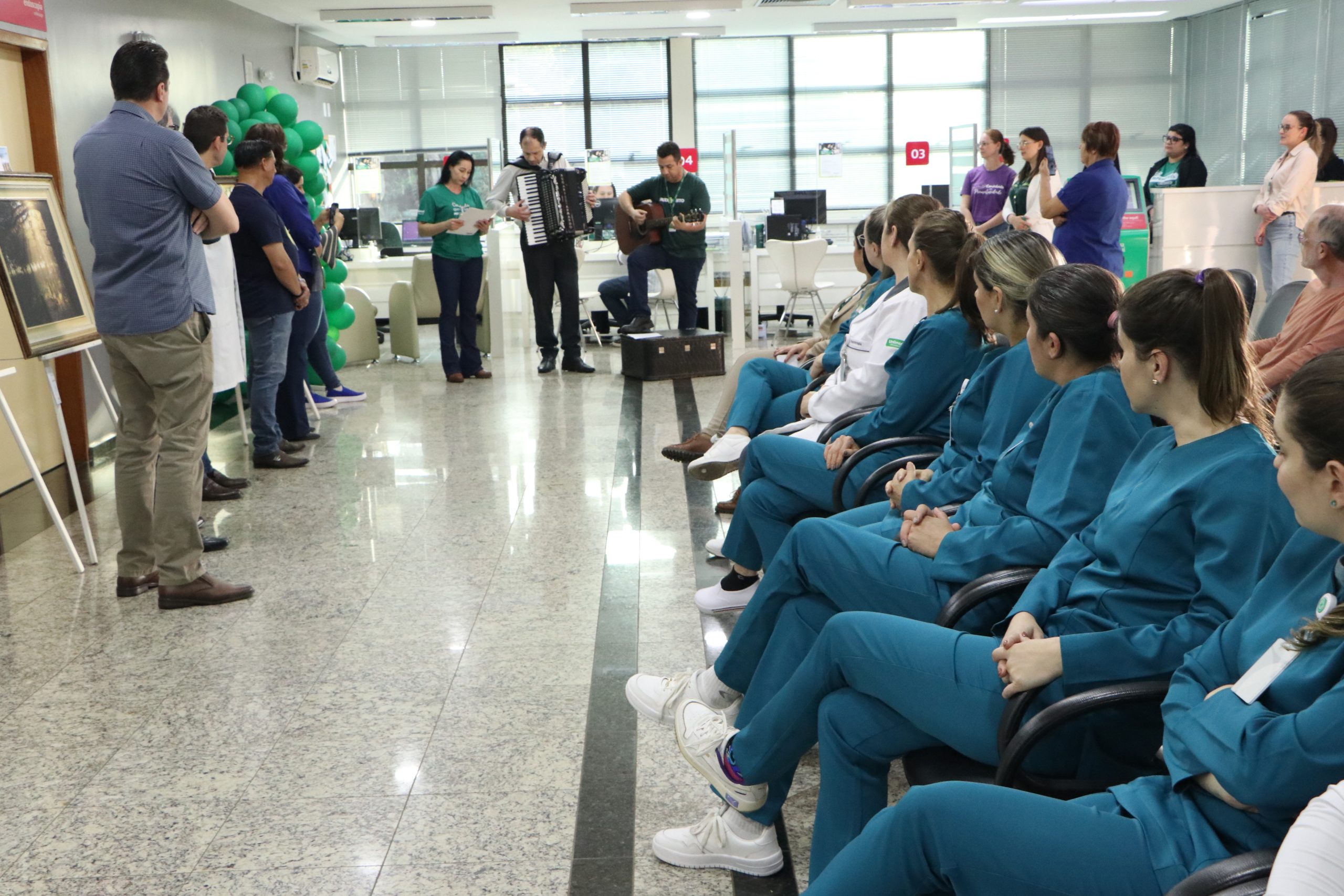 Também participou da solenidade o gerente hospitalar, Günter Melchiors, além de profissionais de diversas áreas do Hospital Unimed. O evento de abertura foi abrilhantado pelos colaboradores da instituição, Alberto Carvalho Peixoto, Eduardo Delavechia Mosselin e Juciane da Silva Socolhoski fizeram uma apresentação musical.