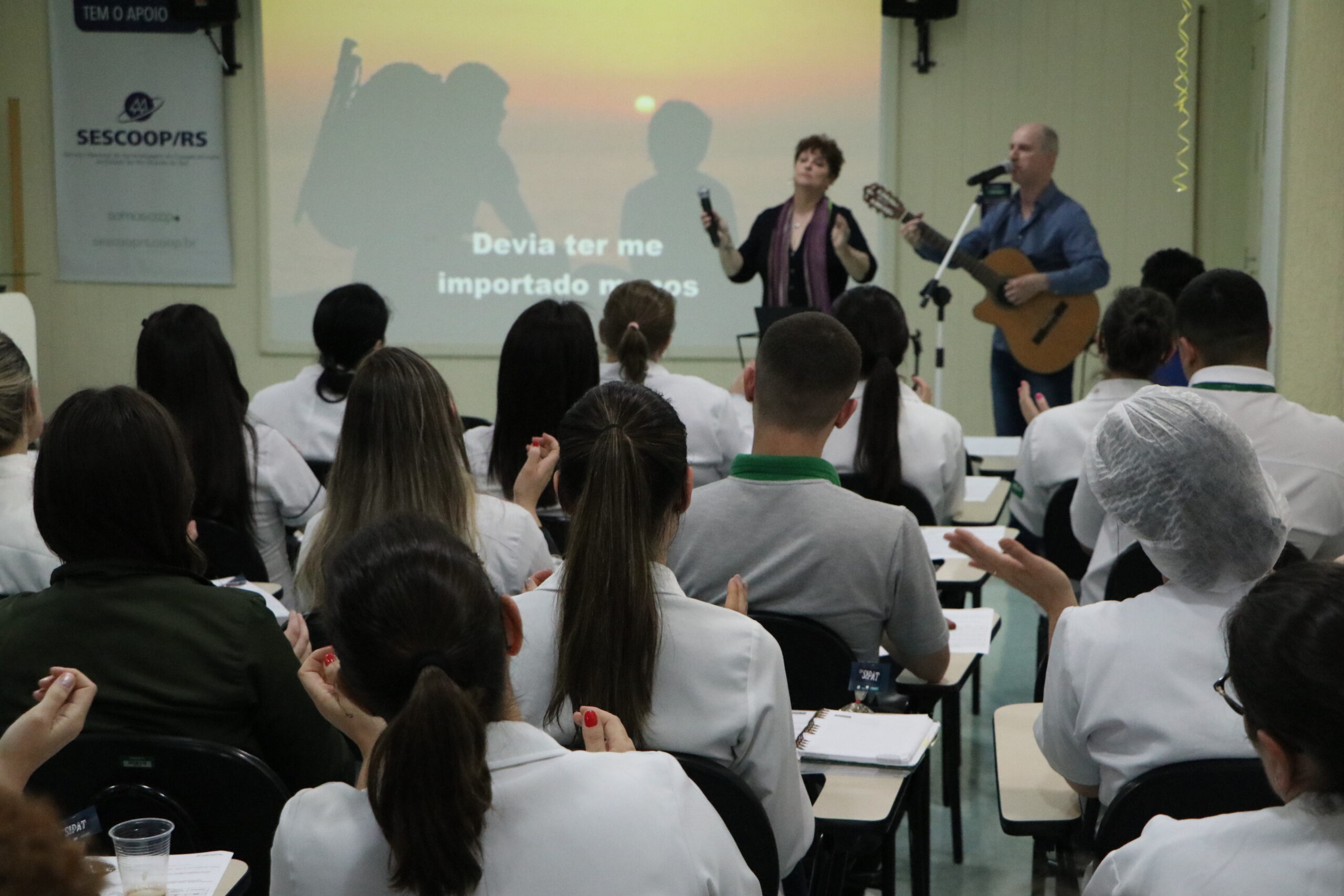 O evento teve início na tarde desta segunda-feira, 11, no auditório do Hospital Unimed Noroeste/RS, com a palestra “Saúde em dia, mostre seu amor pela vida”, com Marcelo Seffrim, palestrante motivacional, coach e musicoterapeuta. No turno da noite, ocorreu a primeira atividade de gincana aos colaboradores do Hospital.