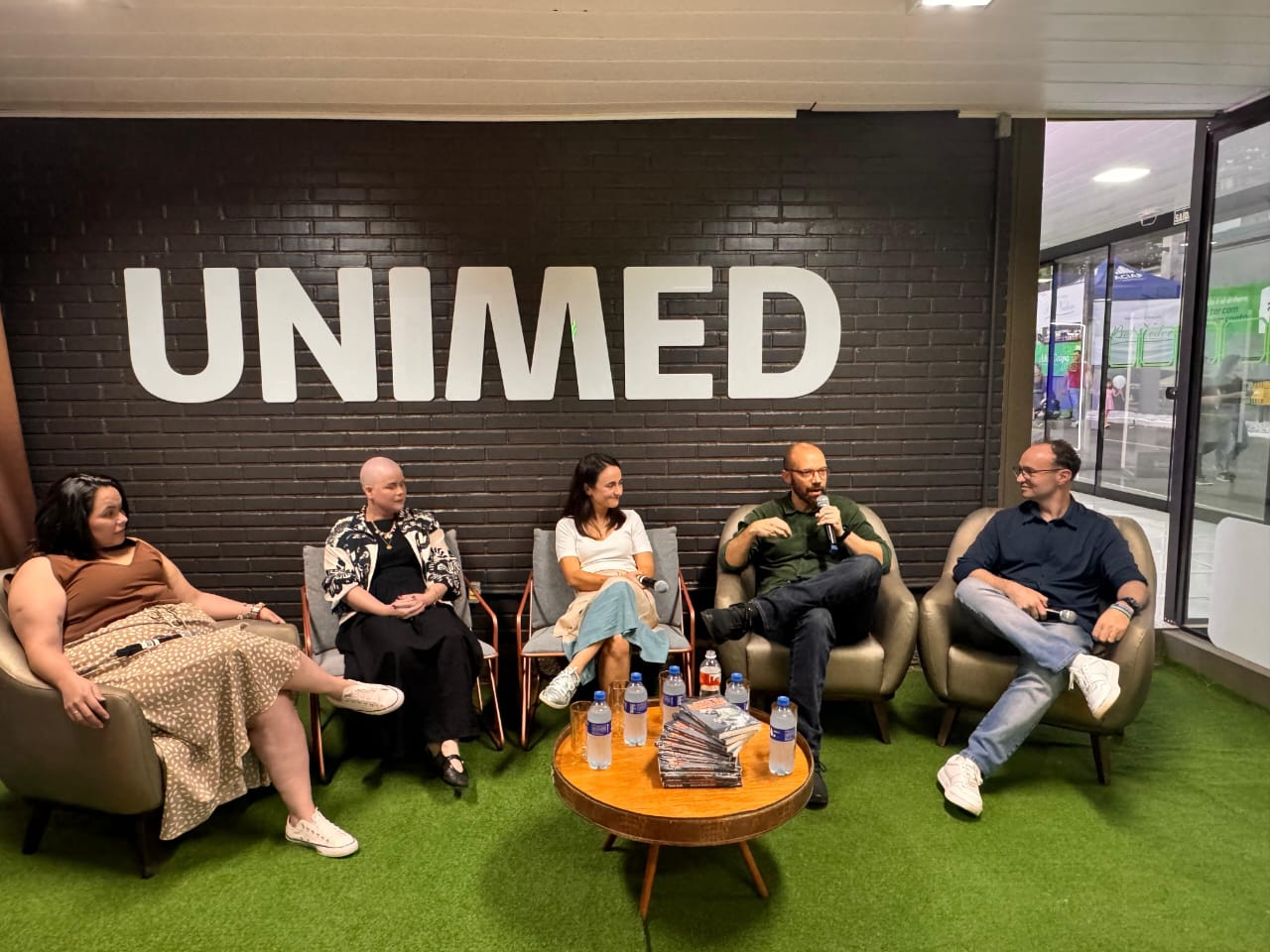 Palestra com o jornalista Daniel Scola – Um dos momentos da programação foi o bate-papo sobre o enfrentamento ao câncer, promovido pela Unimed Noroeste/RS. O encontro reuniu histórias reais de superação e reflexões sobre o poder transformador do cuidado e da empatia. A conversa contou com a participação do jornalista Daniel Scola, da médica oncologista clínica Letícia Y Castro, do arquiteto Lorenzo Cunegato e das pacientes Jéssica Hickenbick e Karine Biscaino, que compartilharam suas vivências com sensibilidade e emoção. O público foi inspirado pelas mensagens de acolhimento e força, reafirmando a importância do suporte humano durante o tratamento oncológico.