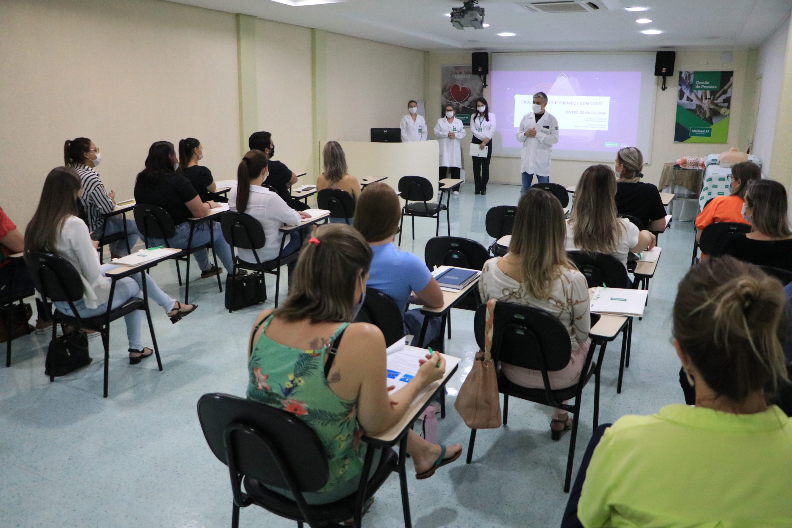 O conteúdo técnico do curso foi desenvolvido pelas enfermeiras Rosane Zawatski e Marisa Sulcheski, do Centro de Oncologia do Hospital Unimed. Ao final da atividade, os participantes puderam conhecer a estrutura e o trabalho do novo Centro de Oncologia e também receberam certificado de participação.